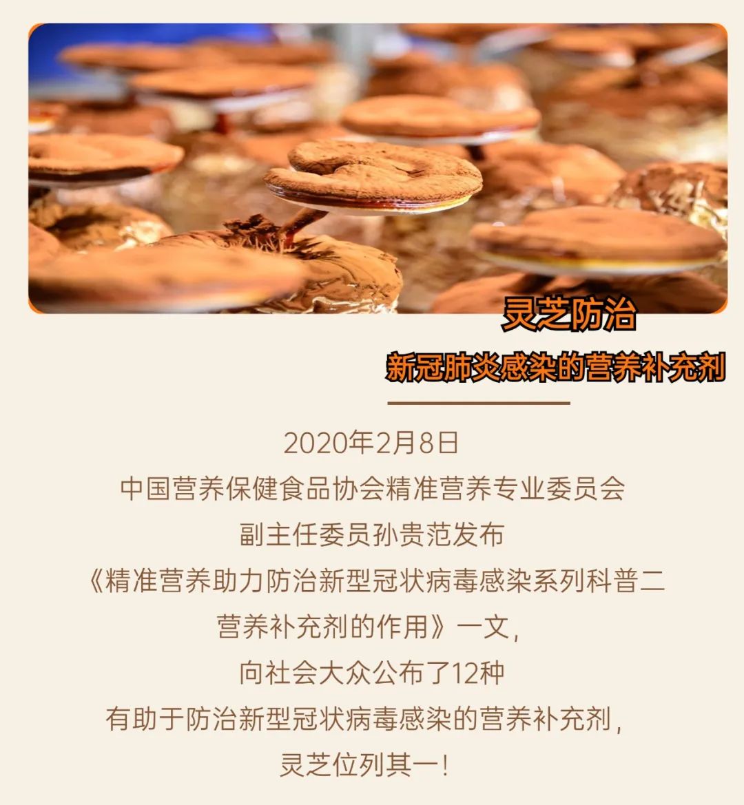 重磅消息!靈芝被推薦為防治新型冠狀病毒感染的營養(yǎng)補(bǔ)充劑!